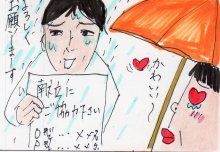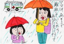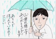 雨に打たれながら 道行く人に、