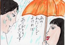 あの青年が傘を持って、私を待っていたわ。