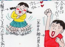 久々にまじまじと献立表を眺めてしまいました。今どきの給食は国際色豊かですね~。カタカナたくさん! ちなみに、次女に一番好きなメニューを聞いたら・・・シーザーサラダでもなく、チリコンカンでもなく・・・「味噌汁」だって!!想像はできていたけど。そう、カエルの子はカエル、夫の汁物好きDNA?によって、(過去記事こちら )次女も「味噌汁ないの?」をしっかり引き継いでいます。