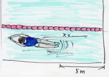 しかし、25メートルのプールを行ったり来たりしてる間に自分が何メートル泳いだかわからなくなり、イーっとなってしまったのです。