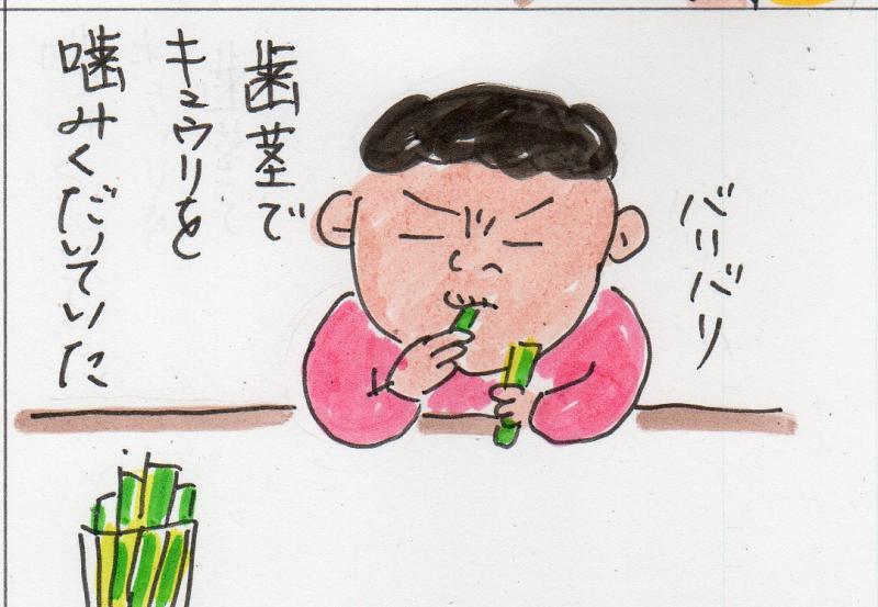 目を離した隙に食卓の上にあった野菜スティックを・・・