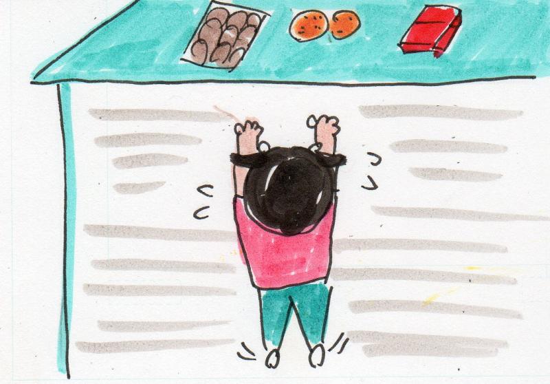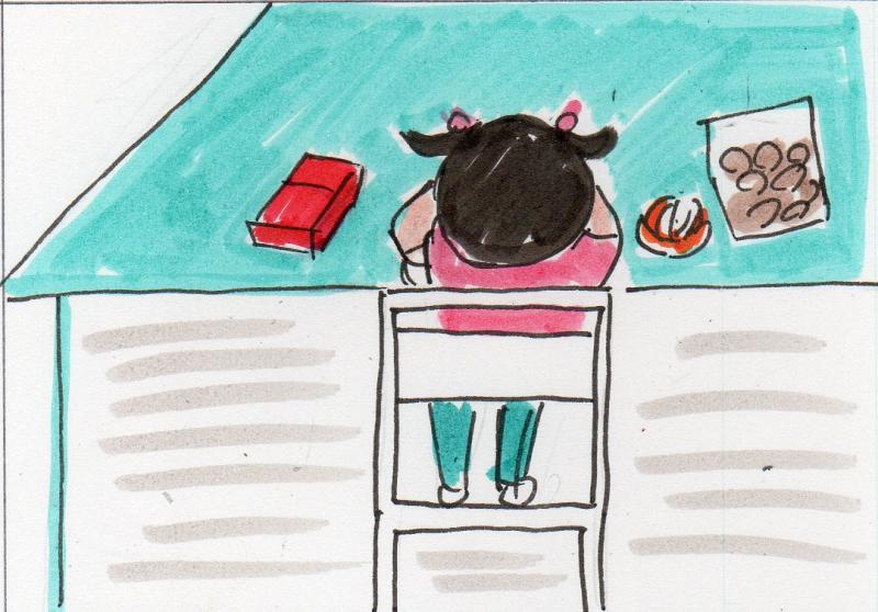 なるべく食べ物は彼女の手の届かないところに置くように