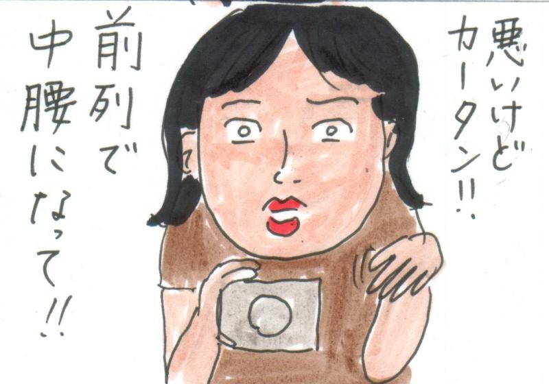 言われた通り渋々前列で中腰したわ・・・。