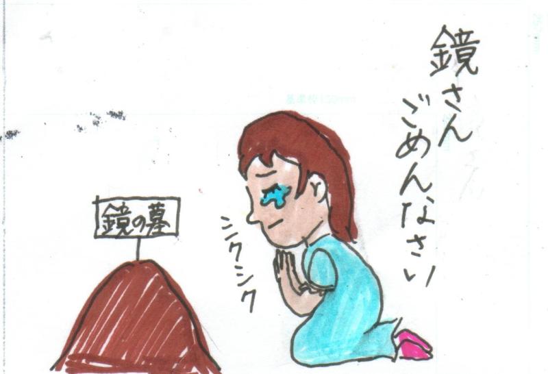 裏返しに床に置いてあった鏡の上を下の子が通過・・・