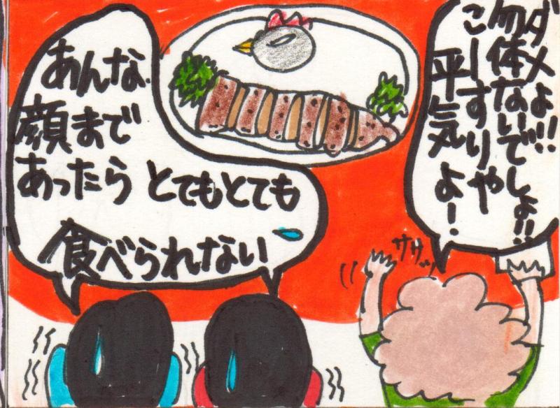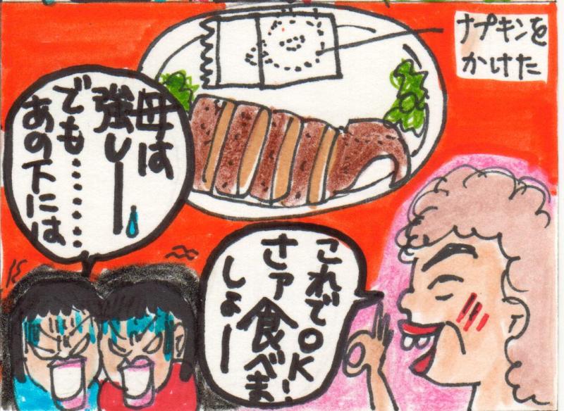 私と姉はその顔に震え、とても箸を付けられない・・・。