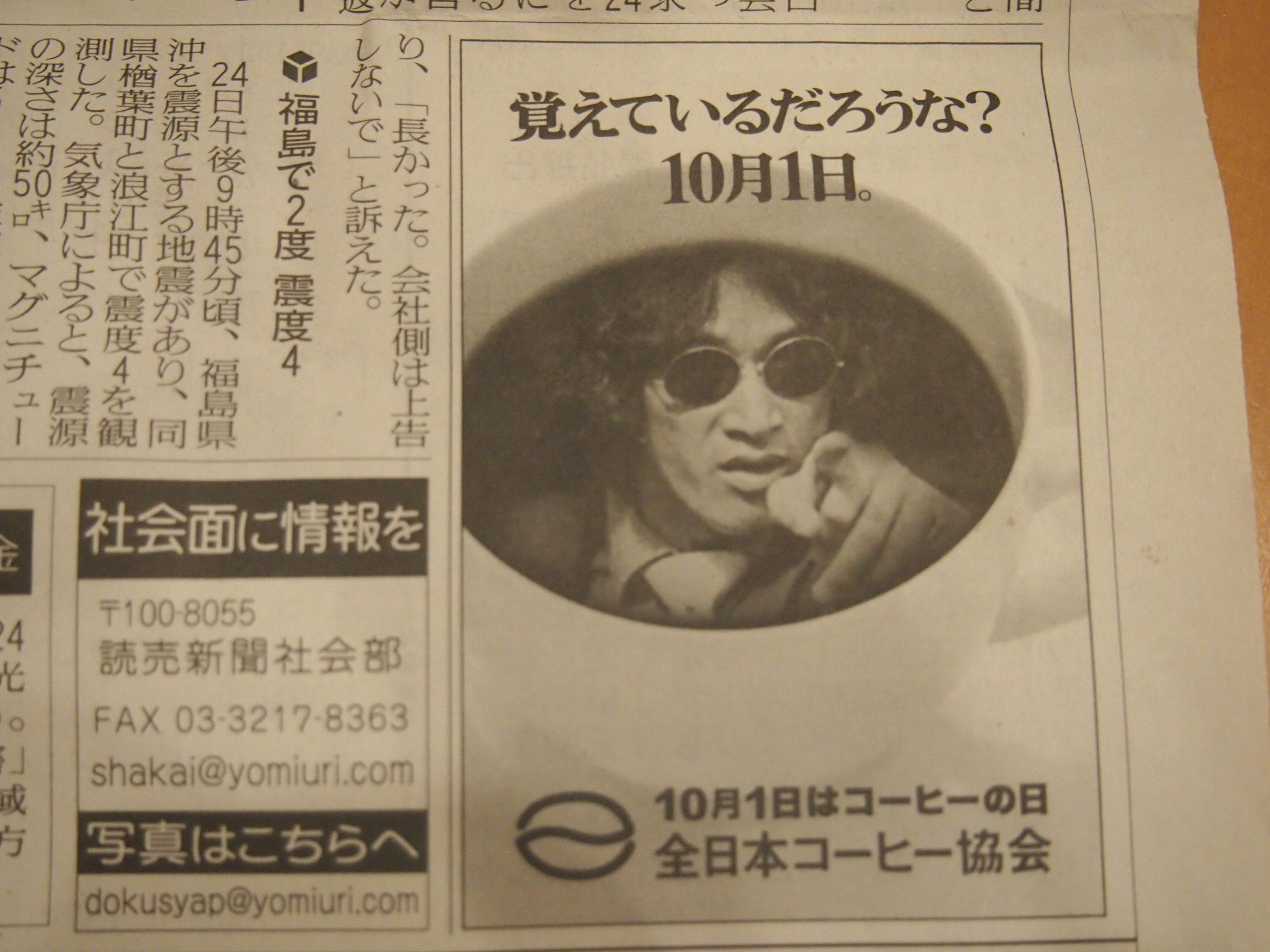 コーヒーの日の今日、