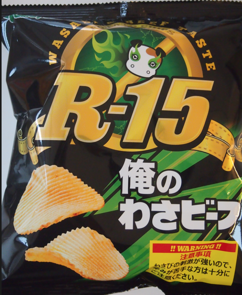 「もっと辛いわさビーフを食べたい」というリクエストに応えて発売されたらしい。右下に注意事項として『わさびの刺激が強いので、辛みが苦手な方は十分にご注意ください』と書いてあるのだけど、わさびの辛みが苦手な人は、買わないんじゃ?なんて思っちゃいけない。今の時代、クレーマーが何を言ってくるかわからない。 R−15というネーミングなので、『大人的な何か!」を期待したが←何を? 特に性的な要素はないみたい。残念←何が?