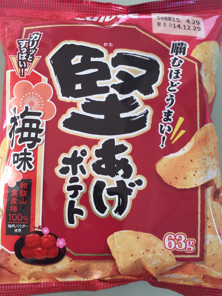 大好きな堅あげシリーズです。口に入れた途端、懐かしい味が!! 何だろうと目を閉じれば、そうよ、子どもの頃、大ブレイクしたあのアメ・小梅ちゃん!! ほのかな甘みと酸味、まさに小梅ちゃんの味なんですよ! 遠足で、小梅ちゃんを舐めているときに、友達が「これあげる」と差し出したポテトチップス口に入れたら・・・きっとこんな感じなんだろうな〜的な。