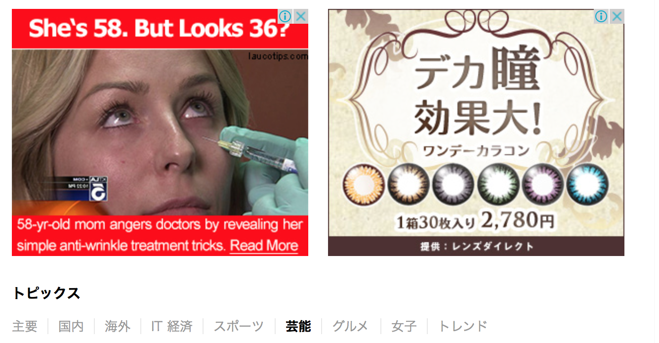 広告の多くがアメリカのものになっていた。
