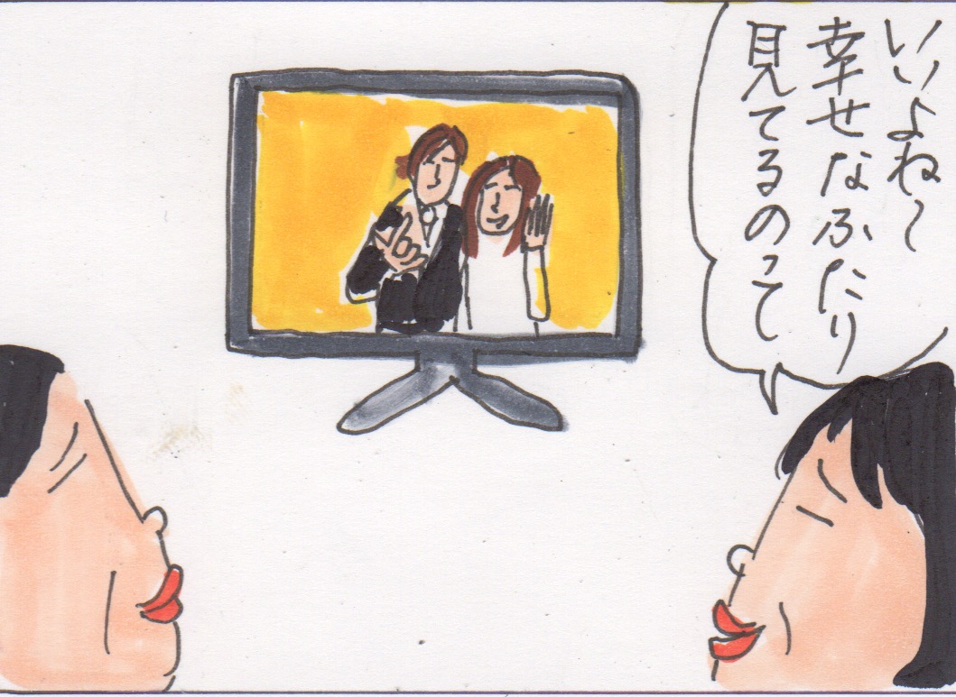 80年代は、芸能人の披露宴の中継番組とかあったのよね。披露宴に参加する芸能人も会場の前でレポーターに呼び止められて、衣装披露兼ねて、インタビュー。レポーターに呼び止められるのが、芸能人としての人気度や大物の証みたいな。当時は、披露宴中継は長いし、特に興味がなかったけど、今ならちょっと見てみたい! 一緒に参加している気分で、同世代の友だちとワイワイ「あのテーブルのメンバーすごいよ!」「みて!あの衣装!」とかミーハー心剥き出しにして、見てみたいわ〜。
