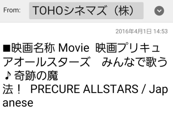映画の予約メールの画面も