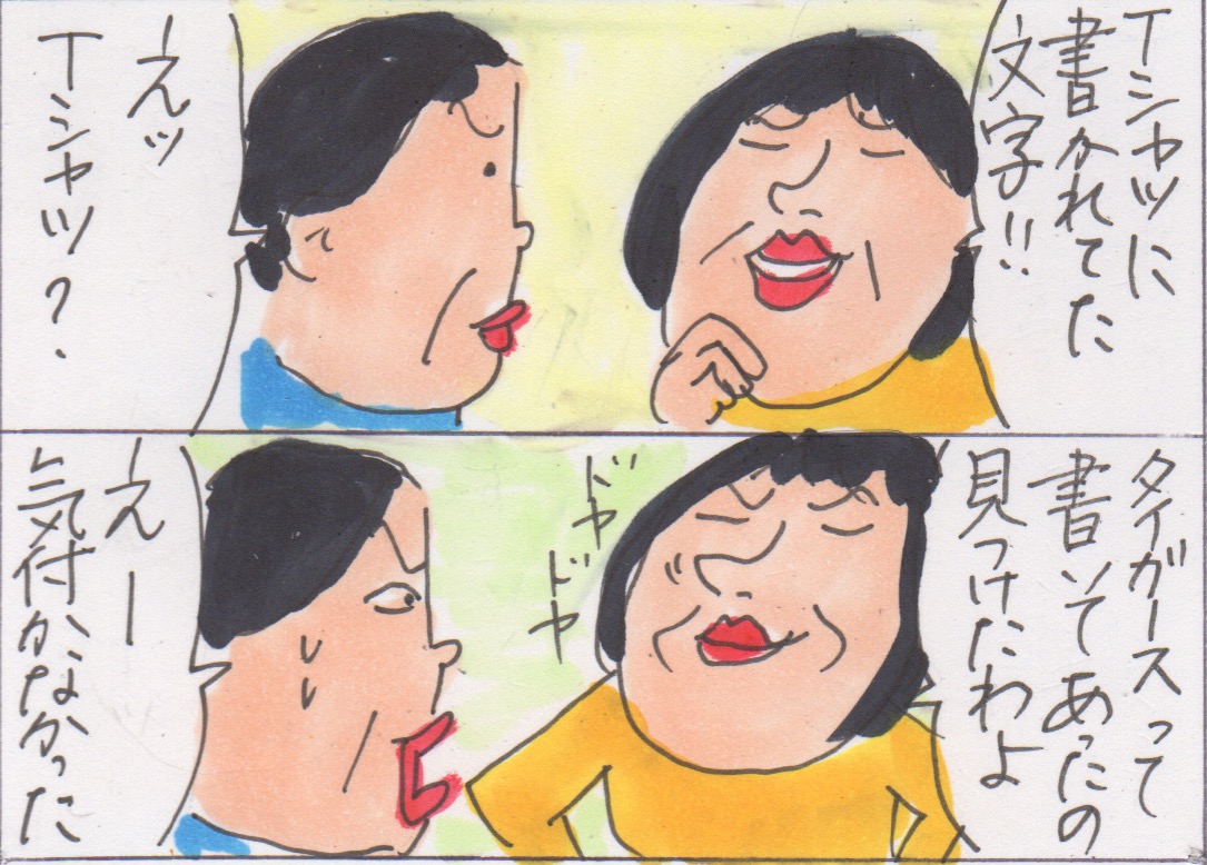 Tシャツに書かれた文字が
