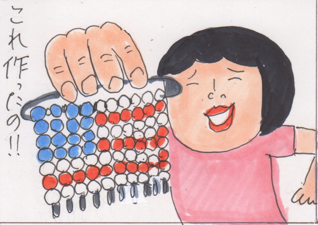 アメリカ国旗のバッチを作ってきたのね。