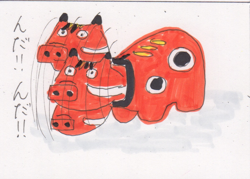 まるで赤べこ状態よ。