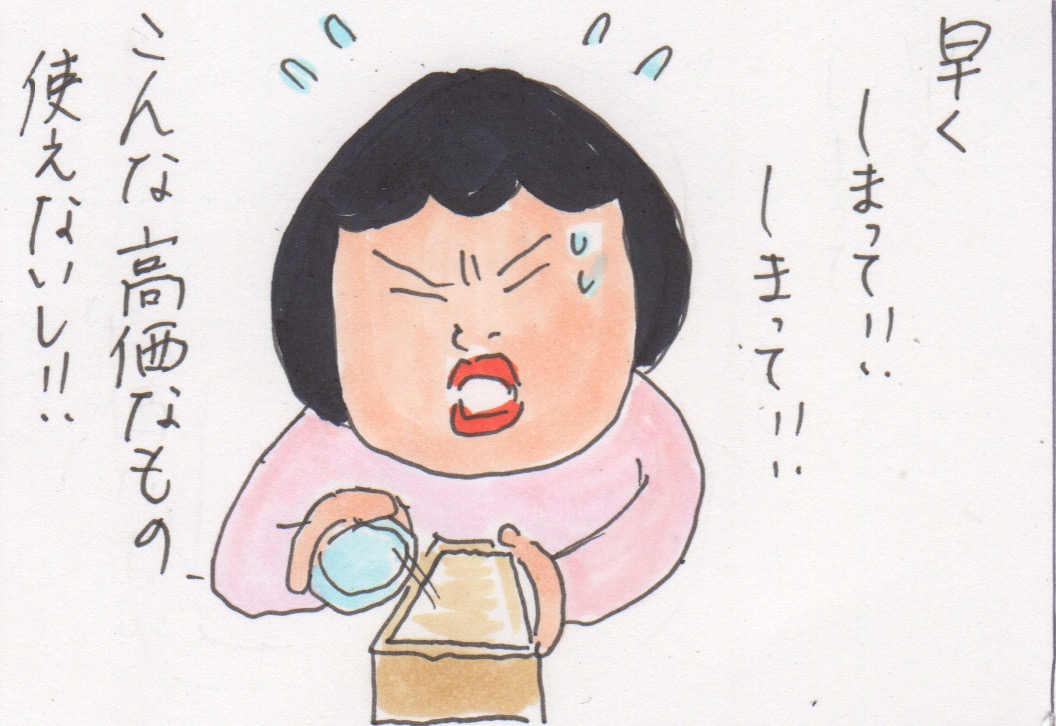 グラスを慌てて箱に戻し始めた。