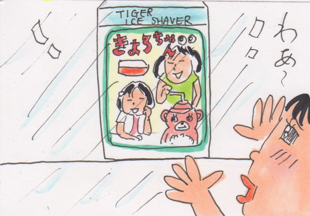 きょろちゃん、今日のネットニュースで知ったけど、去年復刻版が出ていたのですね。やっぱりきょろちゃんはかわいい! もしね、これが普通のかき氷機だったら、私、今まで持ち続けていなかったと思う。あの愛くるしいキョロキョロ動く目のきょろちゃんだから離れがたく・・・捨てられないの。