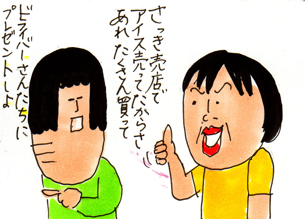 アイスをドライバーさんたちに配り
