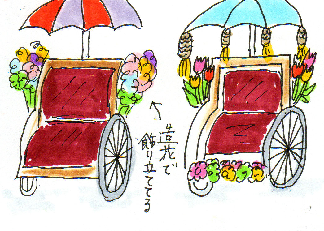 目の前には人力車みたいな乗り物が。