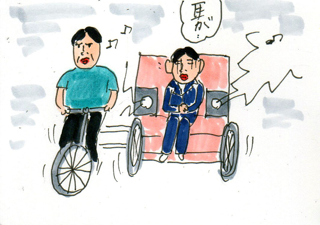 オジサンのに 乗るはめになり