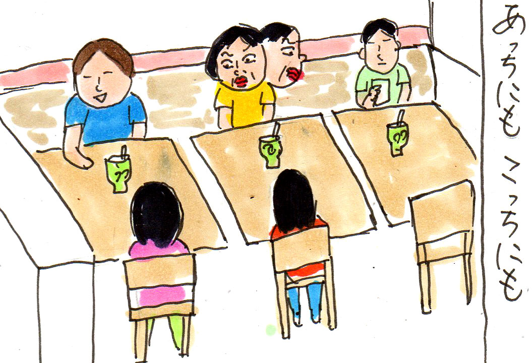 ファミレスで、