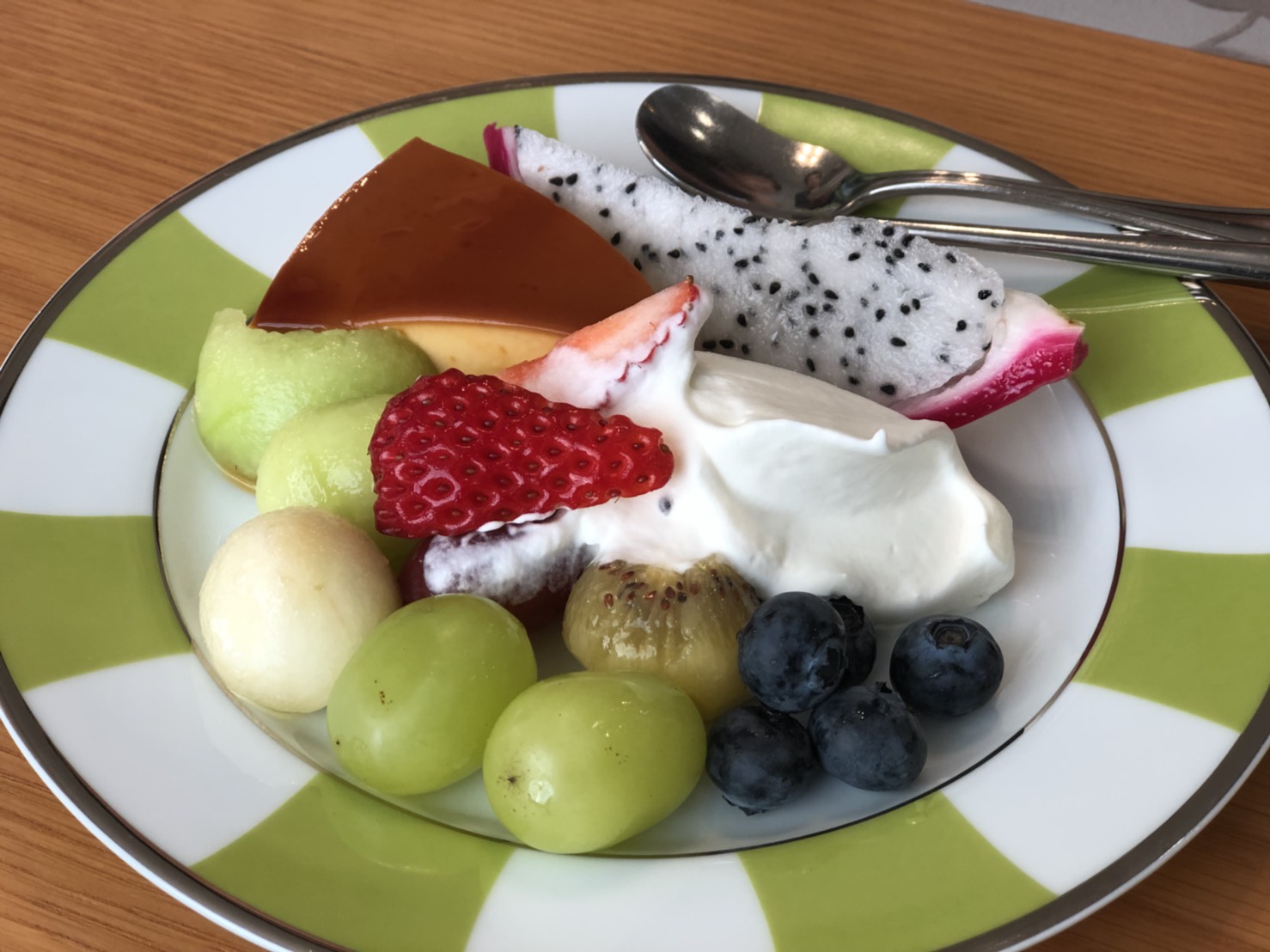 たかシェフの料理に比べてなんて質素で豪快なの!フルーツも切ってバーン!いや、比べる方が間違ってる。