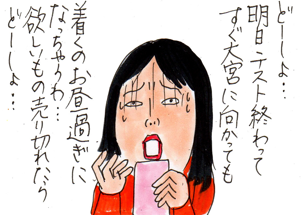 いくらなんでも6時からは勘弁よ!販売開始2時間半前を目指し、向かうわ。靴の中にホカロン入れて、格好なんて構っちゃいられぬすごい厚着に、暇しないようにスマホと読み物持って・・・冷えからお腹下すなんてことだけは避けたいわ、あとBBAのネック尿意も!それだけが心配。また帰ってきたら、報告するわ。LIVEレポは今回は書けないからww