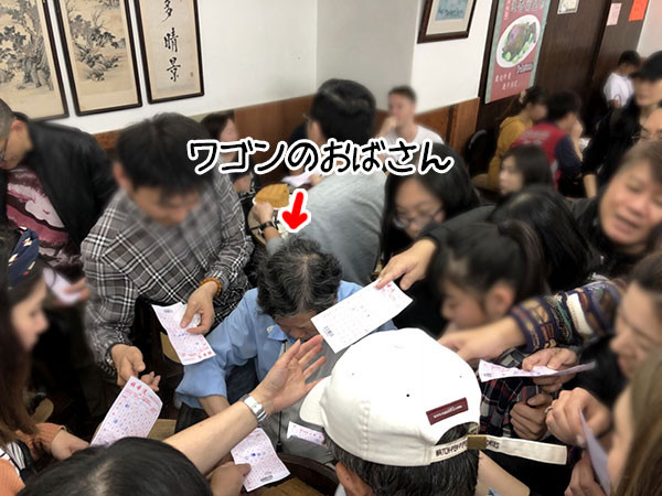 おじさんがワゴンの人垣をかき分け