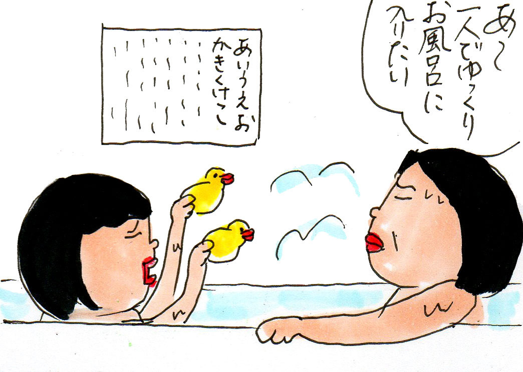 よくお風呂であーっ、独りで入りたーいって子供にあたってました。がしかし、今は自由。故にダラダラのぐだぐだ。全く同じです。あの頃が懐かしい…