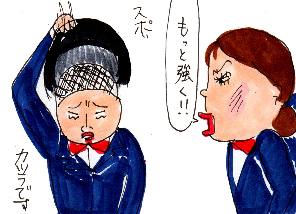社命で髪を切らせたら、今なら大騒ぎですね。