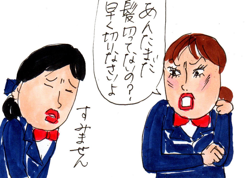 2年目以内は髪切れなんて、今なら大問題ですよね?!なんかニュースで取り上げられそう〜そしてだったら辞めますと簡単にいう若者が何人かいそう。