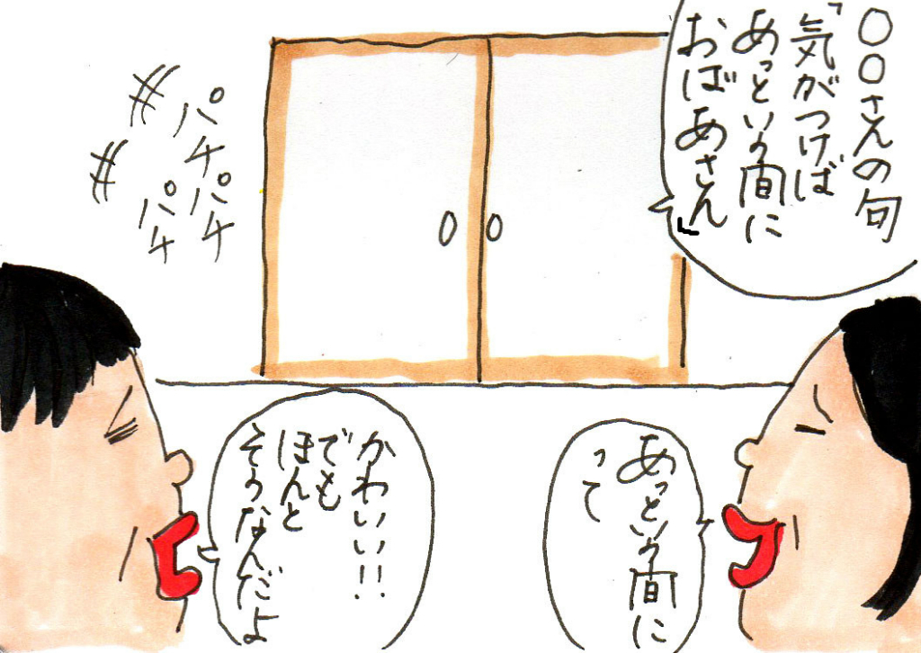 「秋茄子は・・・?」「嫁に食わすな!」「老いては・・・?」「子に従え!!」みたいな。私もその場で参加したくなったわよ。