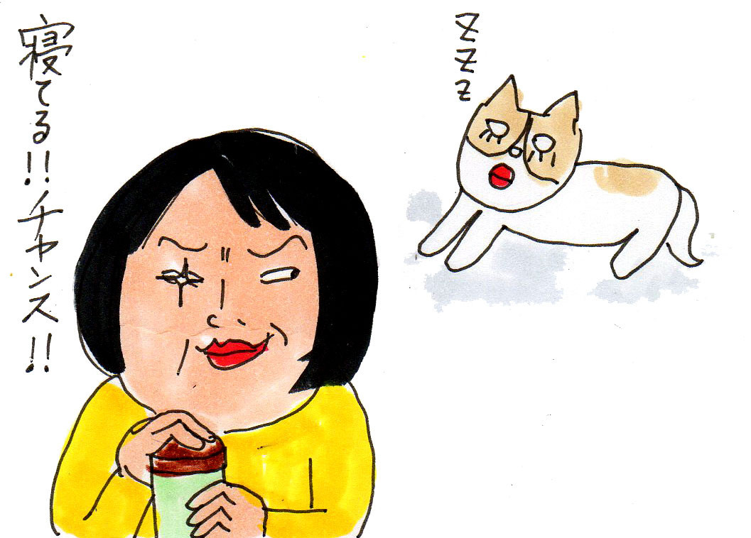 カータンがコーヒーを飲む時ぷーちゃんの好きなオヤツをあげたらどうでしょうか?