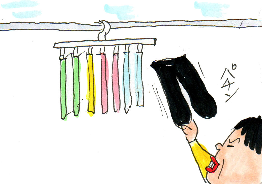 急いで外に干してあるタイツをとって