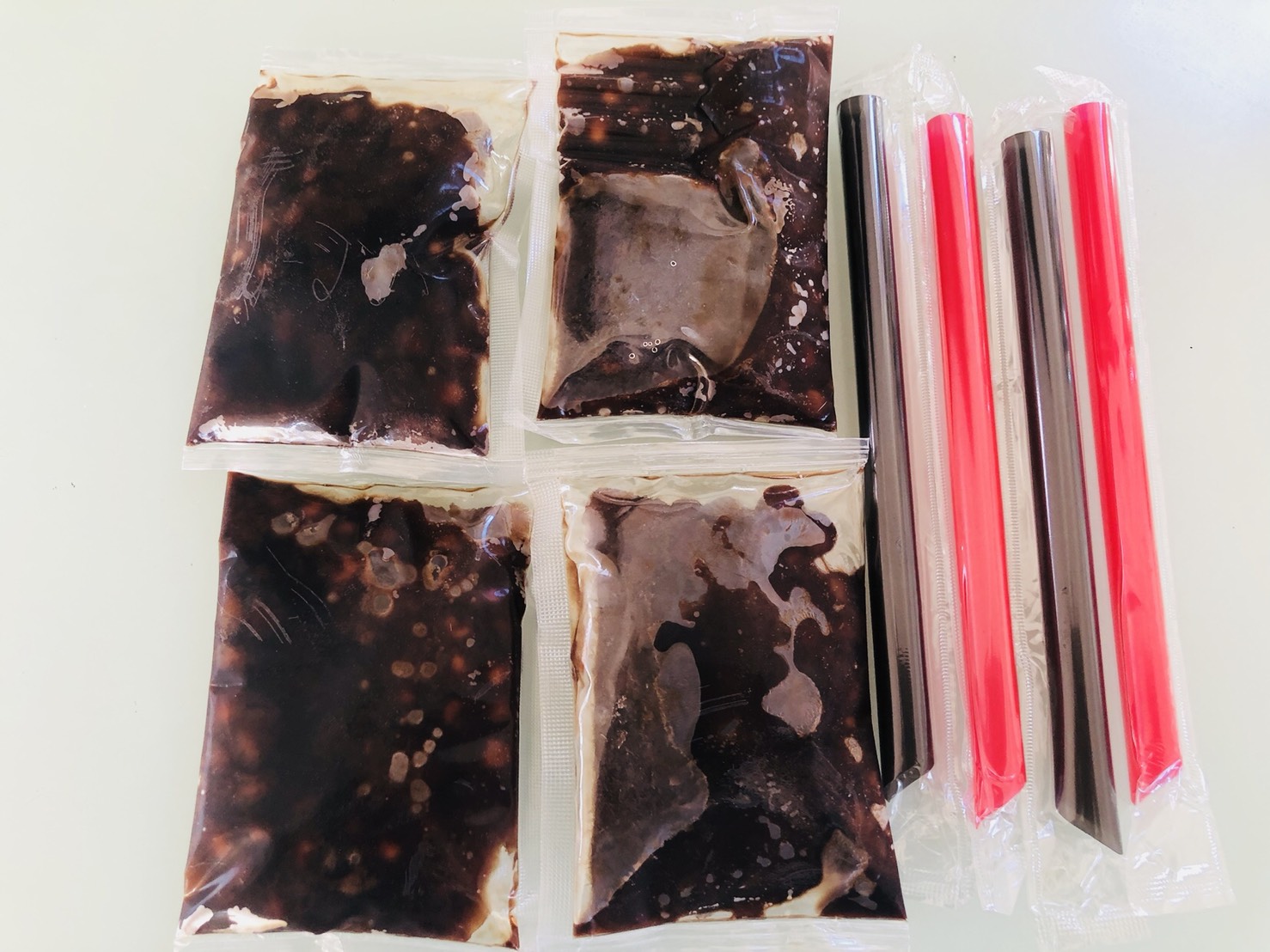 ミルクティーの味のタピオカとストローが4セット