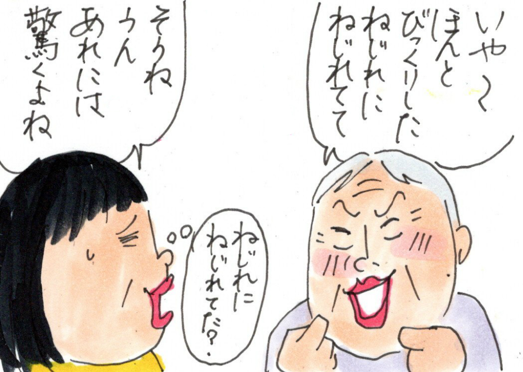 すごく興奮して、身振り手振りでねじれマンションを夢で見た話をしてきた父。完成模型とか見せてもらったのかわからないけど(聞かなかった)父が手で作ったねじれ具合は、なんだかちょっと違う気がした。でも、あの興奮を否定するのも気の毒だし、あのねじれマンションがすごいのには変わりないからいいか!と。でも、父がどんなねじれマンションを夢で見たのか、私もちょっと気になるけど。