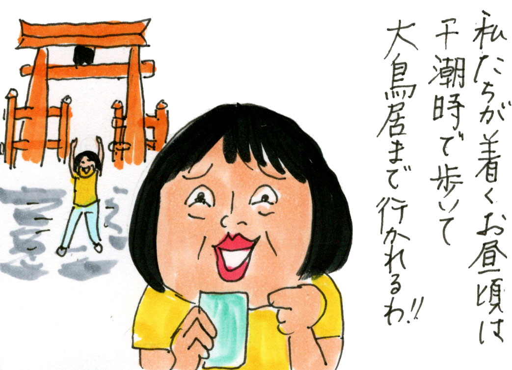 大鳥居の下まで歩いて行かれるとのこと。
