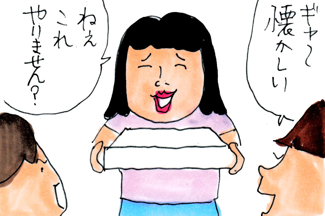 今だったら合コンとかで大盛り上がりのゲームかも。(カラダの硬くなった年配者には地獄だけど)
