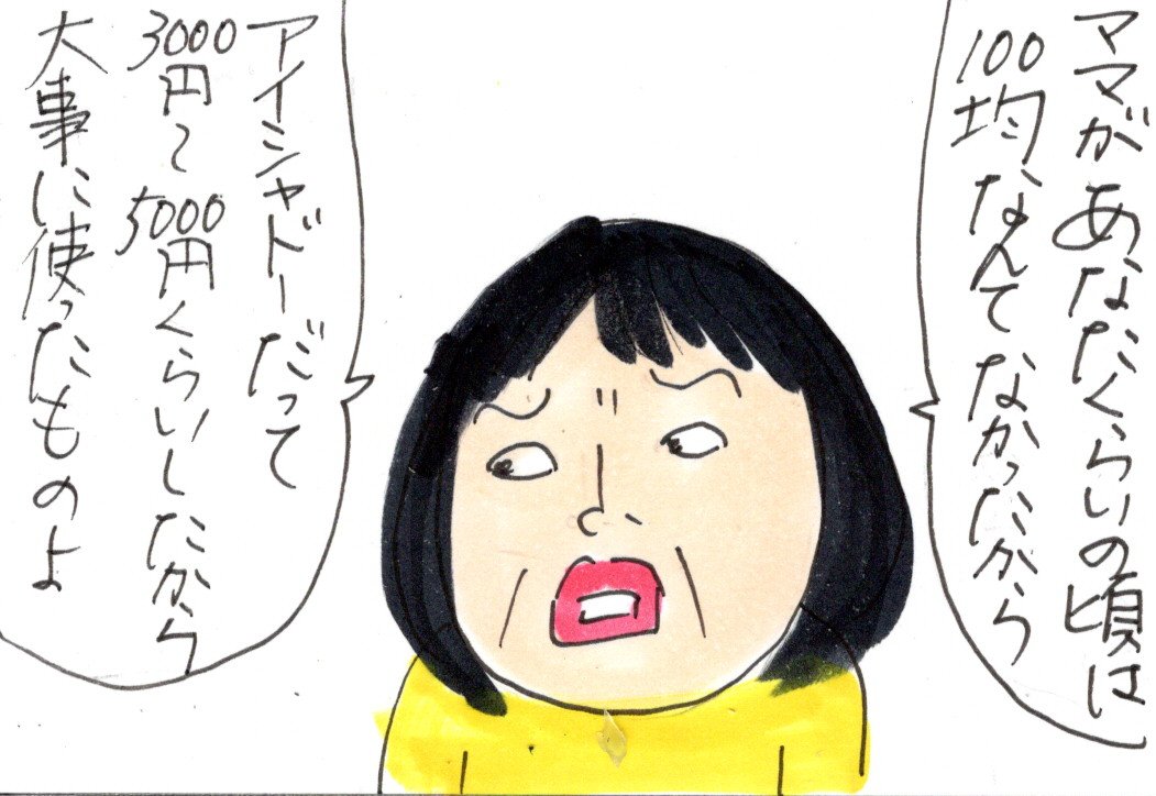 20年くらい前の私がぺーちゃんの年代の頃、お金なくて百均でアイシャドウ買ったらいまいちでした。