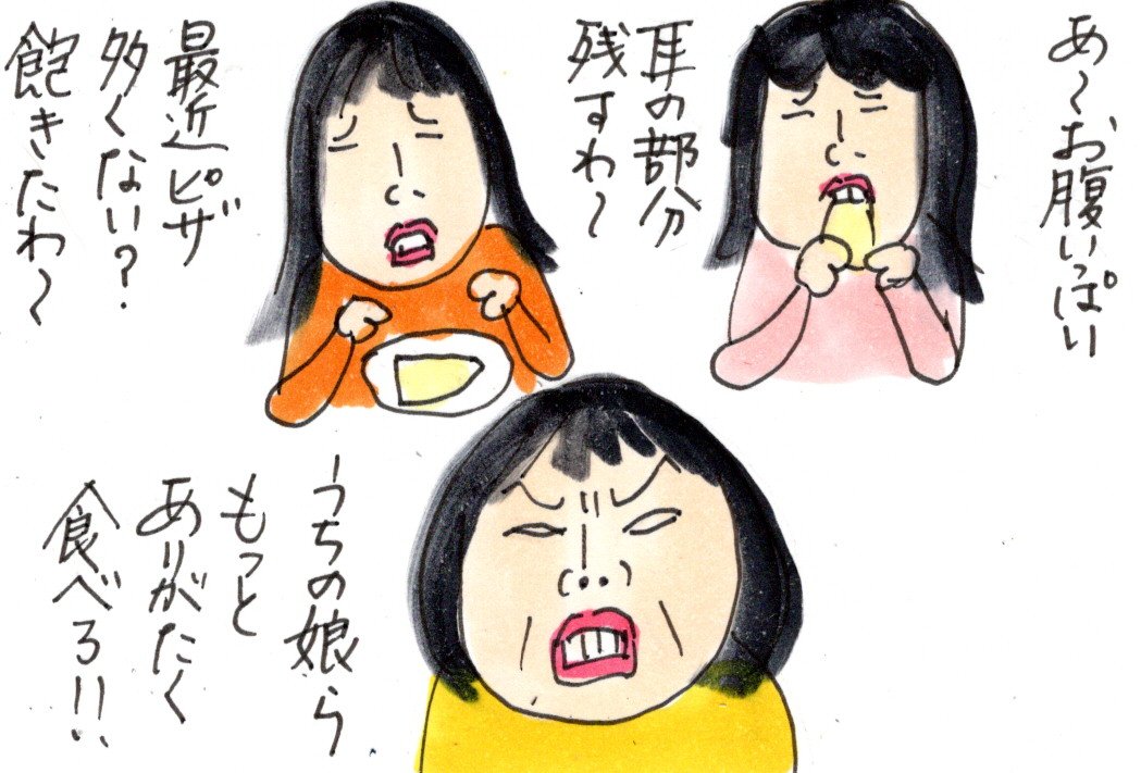 ありがたみも感じずピザを食べる姉妹に。