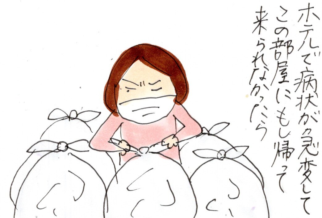 ホテル療養に持っていった荷物の消毒も考えなきといけないですね。捨てられるカバン、なるほど、と思いました。