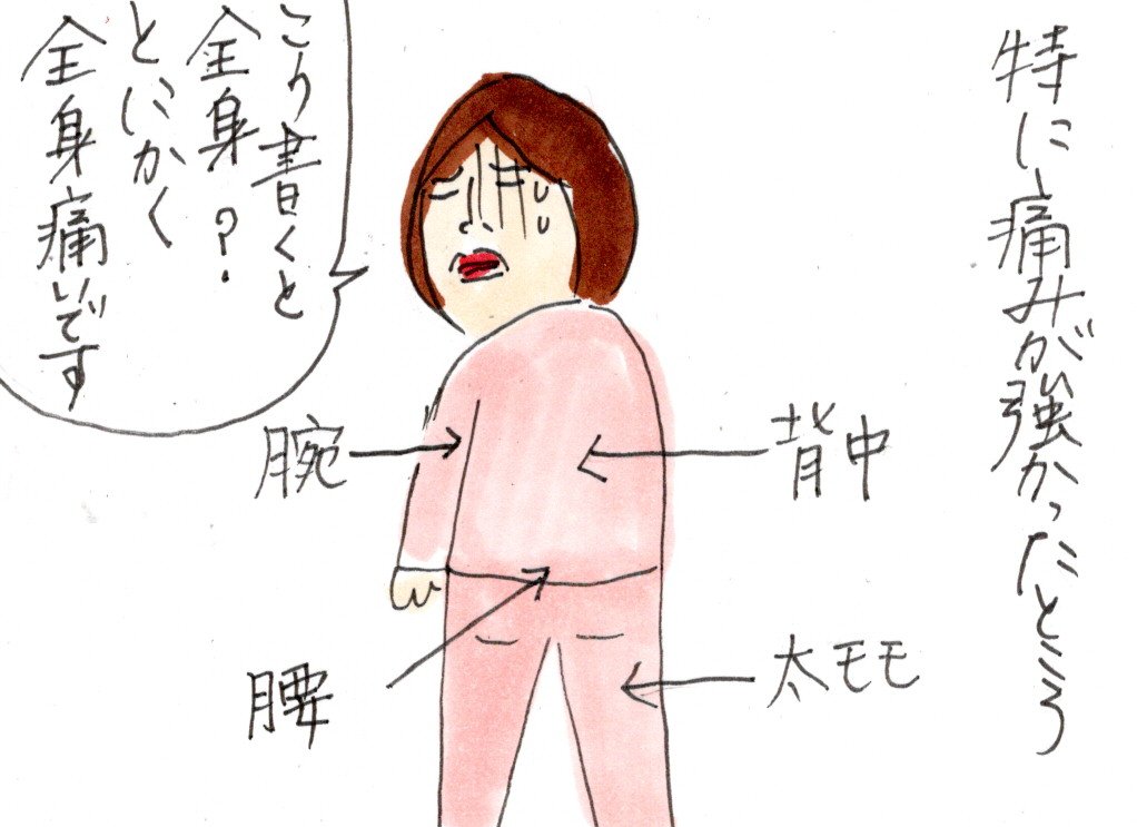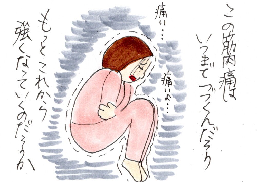 けれど、熱に続き筋肉痛(中程度にもなってない)。でも進行している。次は?どんな症状?進行してるのに、人の気配の無いホテルでこのまま一人?恐い…そう、恐い!と。