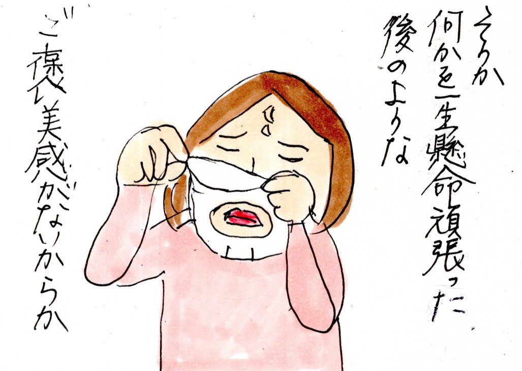 ご飯美味しくてよかった〜と思って読んでたら、急に味覚障害が出るところで、ハッとさせられた。