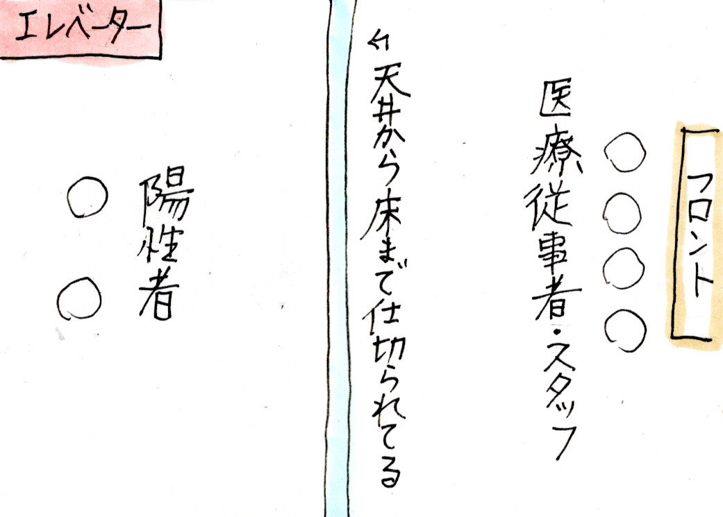 病院につきましたら、コロナ専用のエレベーターに乗り、車椅子で部屋まで移動です。