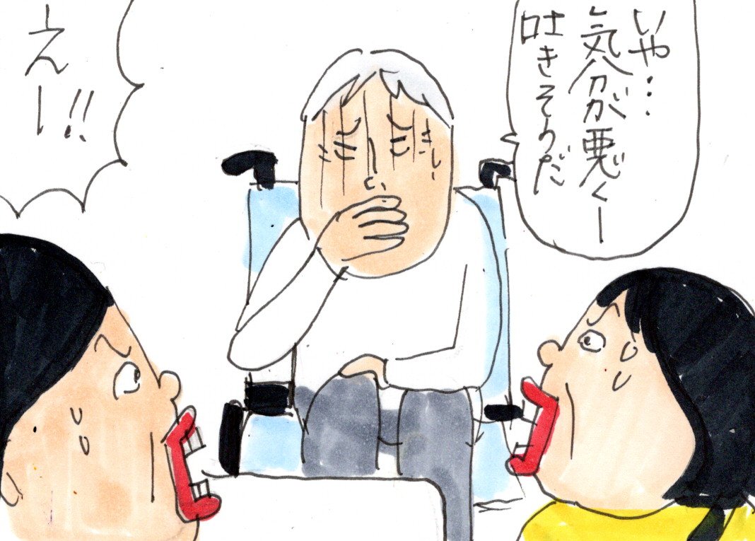 お父様、車の揺れがダイレクトに伝わるので、車に酔われたのでしょうねお気の毒です。