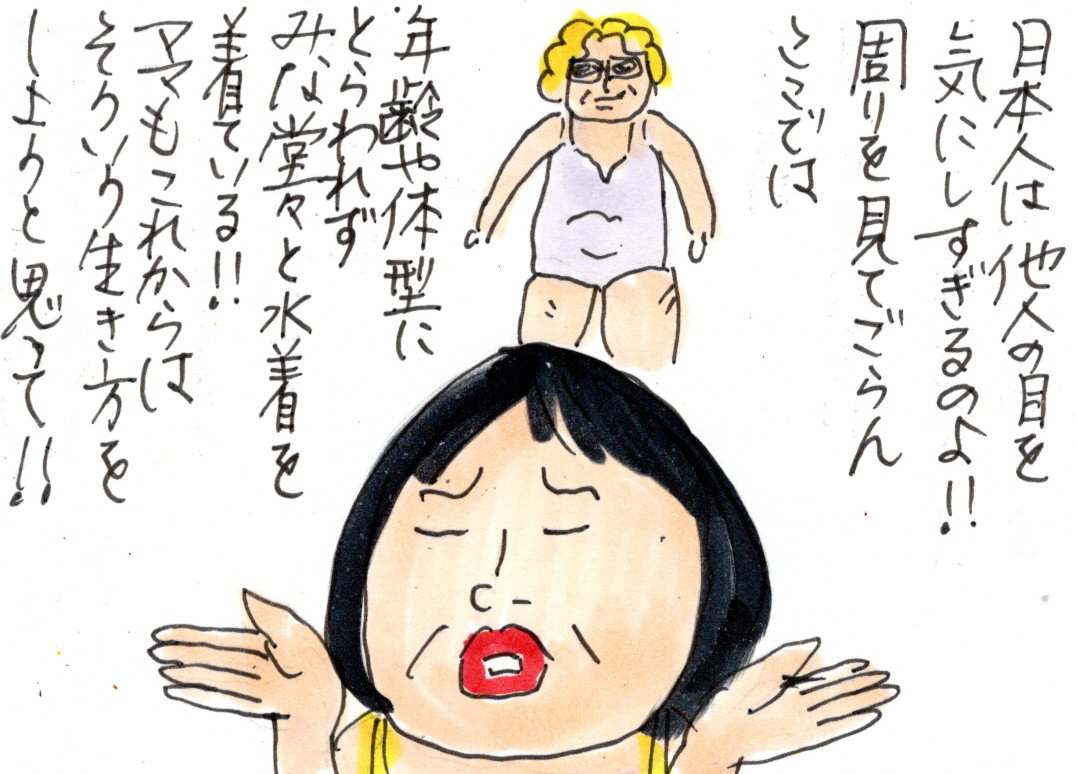数年前ハワイでビキニとか着て、かーたんと全くおんなじ気持ちでした。日本人は人の目気にし過ぎ!欧米の年配の方なんか堂々としてるじゃない⁉︎