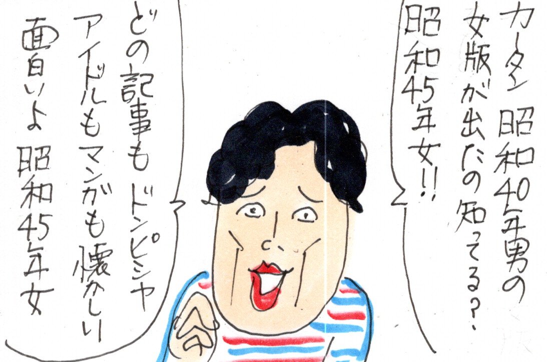 『昭和45年女』、昭和40年代生まれの女の古には刺さりまくりの記事ばかり。昭和メルヘンのグッズ紹介とか、懐かしくて毎号、涙が出そうになる。
