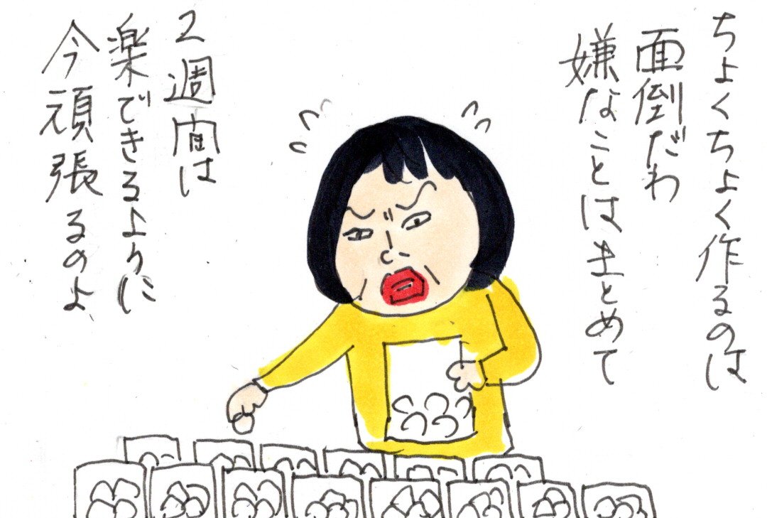 お菓子もそうですけど、お昼用にストックしてある冷凍食品を空にしてました。。