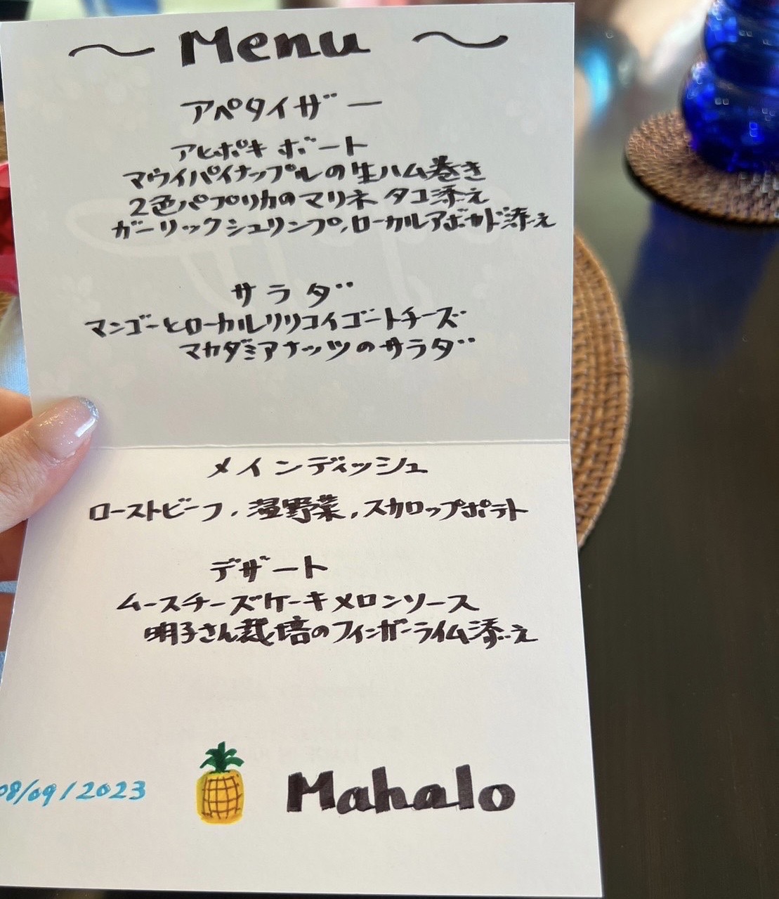 みこさんお手製のメニューが席に用意されていた。