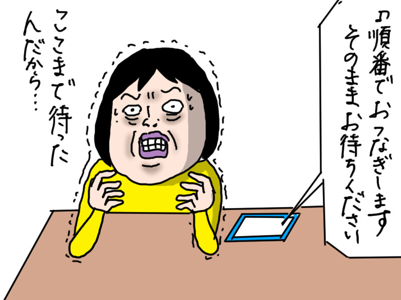 「このままお待ち頂くか、しばらく経ってからお掛け直し下さい」のアナウンスが流れ、このまま待つ気満々なのに