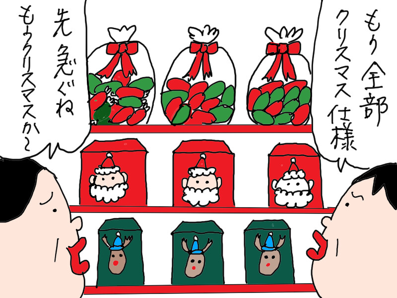 お店によっては早くもすっかりクリスマス一色になっている。。。